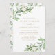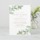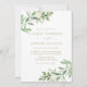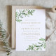 Convide familiares e amigos para o seu casamento com este convite de casamento verde. Apresenta ilustrações de aquarela de folhagem verde, flores brancas e um padrão botânico correspondente. Este convite floral branco é perfeito para primavera e casamentos no inverno. Personalize adicionando seus detalhes.