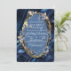 Convites Flores brancas e Douradas de abstrato na Seda Azul