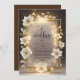 Elegante, moderno e delicado quadro de ornamentado com padrões florais complexos, Flores Brancas Elegantes com Luzes. O quadro é monocromático, dando a ele um olhar clássico e elegante. Ele tem uma qualidade tridimensional, Flores Brancas Elegantes com Convite de Casamento de Luzes que você pode personalizar com suas informações para torná-lo ainda especial. A design romântica minimalista apresenta uma caligrafia elegante e elegante sobre um fundo belo com um olhar limpo e simples.