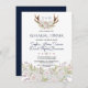 Design de Buquê de de de Rosas Brancas, Simples e Elegante. Ele apresenta belíssimos galhos de aquarela com buquê de rosas brancas, cor-de-rosa, na parte inferior um buquê com os mesmos rosas, todos sobre um fundo branco. No fundo azul marinho, setas com corações, flores e noiva e iniciais de noivos. Adicione suas informações. Para encontrar itens, por favor, visite minha Coleção de Anéis de Rosas Brancas.