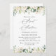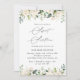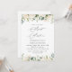 Convide amigos e família de estilo e dê o tom para o seu dia especial com este charmoso convite de aniversário. Design apresenta flores brancas de aquarela e verde em fundo branco.