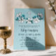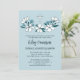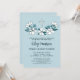 O batismo floral azul pálido e branco é chamado com fontes charmosas contra um fundo azul pálido. Convite floral de batismo com flores azuis e brancas bonito em estilo folk desenhado à mão e uma cruz branca. Convite de batismo azul e branco com simples ilustrações florais em azul e branco e preto para o batizado do seu filho.