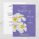 Um design floral suave e delicado com flores brancas havaianas Frangipani ou Plumeria em fundo periwinkle. Escrita elegante que acentua as elegantes flores brancas e amarelas. Um pacote de convite perfeito para o casamento na praia, casamento havaiano, casamento de destino na ilha tropical e muito mais.
