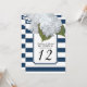 Números de Tabela para seu chá de panela, festa de aniversário, recepção de casamento ou outro evento formal. As hidrangas brancas pintadas à mão são combinadas com um amplo padrão listrado moderno em azul Marinho e branco com um minúsculo contorno de brilho prateado. Um desenho de arte inspirado em esquina, o quadro de canto termina no design. copyright, Audrey Jeanne Roberts.