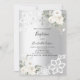 Um convite elegante ao batismo, neutro em relação ao gênero. Um fundo com aspecto fino prateado decorado com flores brancas, rosas, rendas e uma cruz. Personalize e adicione um nome e detalhes.