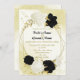 Bonito convite para o casamento, com flores pretas e brancas e folhas de ouro em uma elegante estrutura geométrica de ouro. São simulados os detalhes do brilho dourado. É adequado tanto para os convites para o casamento como para o noivado. PARA MAIS PRODUTOS CORRESPONDENTES, clique na coleção acima ou entre em contato comigo