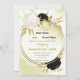 Bonito convite de casamento, com flores brancas e pretas e folhas de ouro em círculo dourado. São simulados os detalhes do brilho dourado. É adequado tanto para os convites para o casamento como para o noivado. PARA MAIS PRODUTOS CORRESPONDENTES, clique na coleção acima ou entre em contato comigo