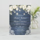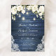 Flores Brancas Rústicas De Madeira Azul Mason Jars String Luz Convite De Casamento. Modelo de Convite para Casamento Rústico de Madeira