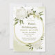 Belo convite de festa de aniversário botânico featuring flores brancas românticas com algumas folhas verdes e algumas flores douradas em círculo dourado. Os detalhes em brilho dourado são simulados. Para mais personalização (alterar a fonte ou sua cor ou alterar o layout) clique em personalizar, role para baixo e clique em (Clique para personalizar ainda mais). PARA MAIS PRODUTOS SEMELHANTES, clique na coleção acima ou entre em contato.