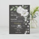 Lindas flores brancas com algumas folhas verdes sobre o fundo negro convite romântico ao casamento