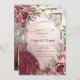 Convites Flores Burgundy Vêm Frame Dourado Quinceanera