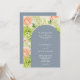 Os convites para casamento tudo-em-um azul e branco apresentam os detalhes da sua cerimônia na frente e mais detalhes no verso em letras brancas chic. As lindas flores de aquarela incluem as drangas brancas e verdes, as rosas cor-de-rosa e creme, as margaridas, os caules pequenos e as folhas. CORRESPONDENTE a itens na nossa coleção.