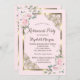 Moldura de ouro elegante e flores cor-de-rosa em fundo rosa dourado.