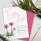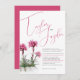 Planta de cataratas alpinas botânicas de arte, (Alpina lychnis), em um berço de rocha com nomes escritos em convite para o casamento de fontes cor-de-rosa. Personalize com seus próprios detalhes de casamento. Rosa comum ao contrário. A impressão é tirada da pintura manual original em aquarela em papel a aquarela prensado a quente pela artista Sarah Trett www.sarahtrett.com para www.mylittleeden.com somente no Zazzle.