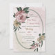Convite de casamento único com flores românticas, cor-de-rosa e champanhe e folhas verdes numa bela estrutura geométrica oval. PARA MAIS PRODUTOS CORRESPONDENTES, clique na coleção acima ou entre em contato comigo.