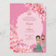 Flores de lótus cor-de-rosa com um casal de noiva indiana bonitinho, convite personalizado para casamento. Pode mudar de função - casamento, recepção, sangeet etc