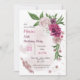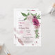 sonho romântico, mauve rosa-burgundy, flores brancas e folhas verdes convite para o aniversário botânico Os detalhes da brilha são simulados