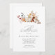 Abóbora branca moderna e elegante e flores de queda design floral. A paleta de aquarelas moles é uma sofisticada mistura de cor-de-rosa macio e ouro amarelo e castanho rico em escuro. A queda deixa à volta da abóbora branca para uma apresentação especial no outono. Perfeito para a sua festa de aniversário de outono.