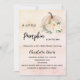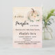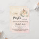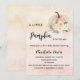 Um fundo de rosa dourado e gradiente cor-de-rosa esmagado, decorado com uma abóbora e flores de cor creme. Personalize e adicione o nome e os detalhes da festa. Texto: Um pouco de Abóbora está a caminho.