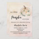 Um fundo de rosa dourado e gradiente cor-de-rosa esmagado, decorado com uma abóbora e flores de cor creme. Personalize e adicione o nome e os detalhes da festa. Texto: Um pouco de Abóbora está a caminho.