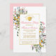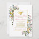 Moderno Elegante Aquarela A Festa de formatura de flor selvagem O convite inclui delicadas flores silvestres amarelas, cor-de-rosa, roxas, azuis e brancas poeirentas, folhas de eucalipto, folhas verdes de sábado e outras culturas botânicas numa estrutura de ouro. Dourado Boné de formatura. Pink Blush Back.