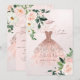 Convites Flores de Aguarela em Rosa Dourado para Festa de 1
