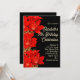 O amarilis preto e vermelho floresce o convite de aniversário de inverno. Linda borda vermelha de Amaryllis no papel preto com modelos de texto de nódulo. Personalize a redação para uma comemoração de aniversário marco para ela. Escolha um papel especial ou escolha a opção de download instantâneo e compartilhe on-line. O reverso é preto sólido.