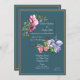 Convites Flores de Aquarela Azul-Verde e Rosa