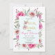 A cor-de-água rosa floresce a menina virtual bebê ou chá de panela. Este bonito design floral apresenta um quadro floral feito de flores cor-de-rosa e pinceladas e folhas suculentas e o seu texto. As palavras "Chá virtual" encontram-se em ouro, em letra decorativa, com buquês florais, enquanto o nome da mãe a ser está na tipografia de escrita rosa.