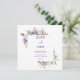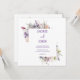 Este convite de casamento mostra flores pintadas de aquarela e um quadro quadrado.
