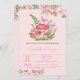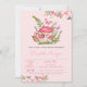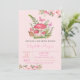 Flores aquarelas, cogumelos e borboletas em fundo rosa. Esses convites para chuveiros de bebês são facilmente personalizados para seu evento simplesmente adicionando seus detalhes.