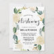 Convite para batizar elegante e caprichoso, com padrão floral de aquarelas com acentos falsos de folha de ouro e brilho de ouro - não há folha de ouro ou brilho. O convite por coroa floral é perfeito para batizações de primavera.