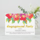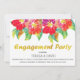 Este convite de festa de noivado moderno impressiona seus convidados! Lindas flores exóticas e tropicais em estilo aquoso, em cor rosa-fuchsia e roxo com folhas verdes, são mostradas nela. Além disso, folha de ouro FAUX com textura forma a expressão "Festa de noivado".