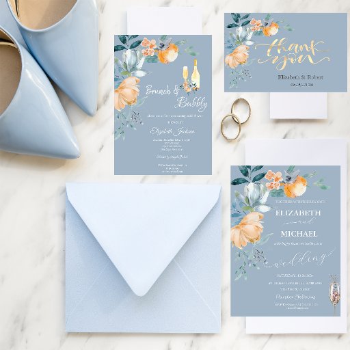 Convites Flores de Aquarela Janto de ensaio azul empoeirado
