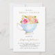 Junte-se a nós para uma festa de chá! Convide familiares e amigos para o seu evento com este chá de panela personalizável. Apresenta a ilustração aquarela de uma equipe com um buquê rosa. Personalize adicionando seus detalhes. Este chá de panela floral é perfeito para eventos de primavera e jardim.