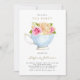 Junte-se a nós para uma festa de chá! Convide familiares e amigos para o seu evento com este convite de festas de chá personalizável. Apresenta a ilustração aquarela de uma equipe com um buquê rosa. Personalize adicionando seus detalhes. Este convite de festas floral é perfeito para eventos de primavera e jardim.
