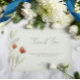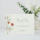 Flores vermelho-aquarelas com folhas verdes sábias em um obrigado personalizável, personalizável, de fundo verde-claro.