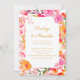 Convite de Casamento Vertical Personalizado com Flores de Aquarela Rosa e Laranja e Tipografia Script