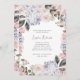 Este belo e feminino convite para chás de fraldas apresenta um quadro de flores e rosas cor-de-água do estilo de safra rosa e roxo, com elegante roteiro moderno e texto clássico.