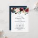 Convites Flores de Beleza Burgundy Rústico Azul Marinho & V