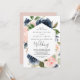 Este cartão de convite para casamento branco de flores e marinhos é perfeito para um casamento floral. O clássico e elegante design apresenta marinho de aquarela azul e flores cor-de-rosa pinceladas.