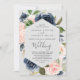 Este cartão de casamento de flores marinhos e cinzas leves é perfeito para um casamento floral. O clássico e elegante design apresenta a moderna marinho de aquarela azul e flores cor-de-rosa pinceladas em um fundo de cinza leve.