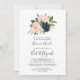 Este convite para Bat Mitzvah, que é brilhante e marinho, é perfeito para um morcego floral mitzvah. O clássico e elegante design apresenta marinho de aquarela azul e flores cor-de-rosa pinceladas.