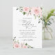 Convide amigos e família em estilo e dê o tom para seu dia especial com este encantador convite para o casamento. Design apresenta flores cor-de-água cor-de-rosa pincelada e verde em fundo branco.