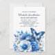 Borboleta azul elegante e convite de aniversário de flores. Entre em contato comigo para obter assistência com suas personalizações ou para solicitar outros produtos Zazzle correspondentes ou coordenadores para sua celebração.