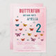 Convite de aniversário De Garota Flores De Borboleta Bonita. Celebre o seu dia especial com este convite de aniversário, perfeito para a festa de aniversário de uma menina! Apresentando um fundo de gradiente rosa macio, borboletas coloridas, delicados sotaques florais, este convite adiciona um toque mágico a qualquer celebração. Personalize-o com o nome do seu filho e torne o seu dia inesquecível!