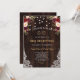 Design de cartão rústico e vintage com renda vintage, dois corações de corda, flores rosa borgonha aquarela, cortina de luzes de corda, fontes lindas, em um celeiro antigo. Use a ferramenta Personalizar para adicionar suas informações. Para itens correspondentes, visite minha Coleção de Molduras de Corda.