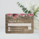 Monograma de fatia de madeira é decorado com floral boêmio chic de aquarela de galhos, gipsófila, rosas e outras folhagens botânicas. Rosas Borgonha Silvestres e cartão de resposta de casamento rústico de campo de madeira de celeiro escura e rosas vermelhas borgonha coloridas complementam nosso convite de casamento de laje de árvore.
