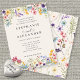Convite para Flores de Casamento Russo de Flores Selvagens. Flores selvagens capturam o charme e a beleza de uma celebração do campo com sua estética natural e de retorno. O convite é enfeitado com delicada ilustração aquosa de flores silvestres em matizes macios, lembrando um prado beijado ao sol. As flores graciosamente enquadram as bordas do convite com sua beleza caprichosa.
