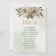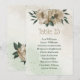 Cartão de disposição de assentos com número de mesa único, apresentando flores de champanhe românticas e folhas verdes.